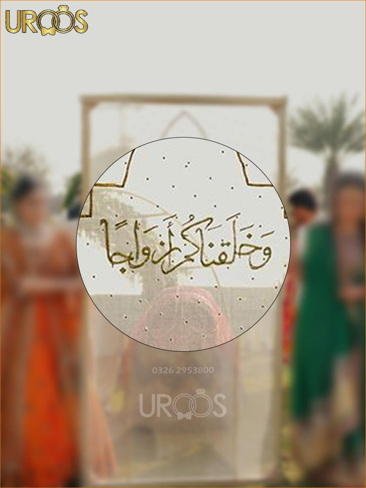 Make your Nikah entrance spiritually meaningful and visually majestic with the Ayat-e-Zawaj banner — a bridal walk-in chaddar framed with divine elegance. Designed to highlight the sacredness of the moment, this banner features the Quranic Ayah that celebrates your pairing as a couple.