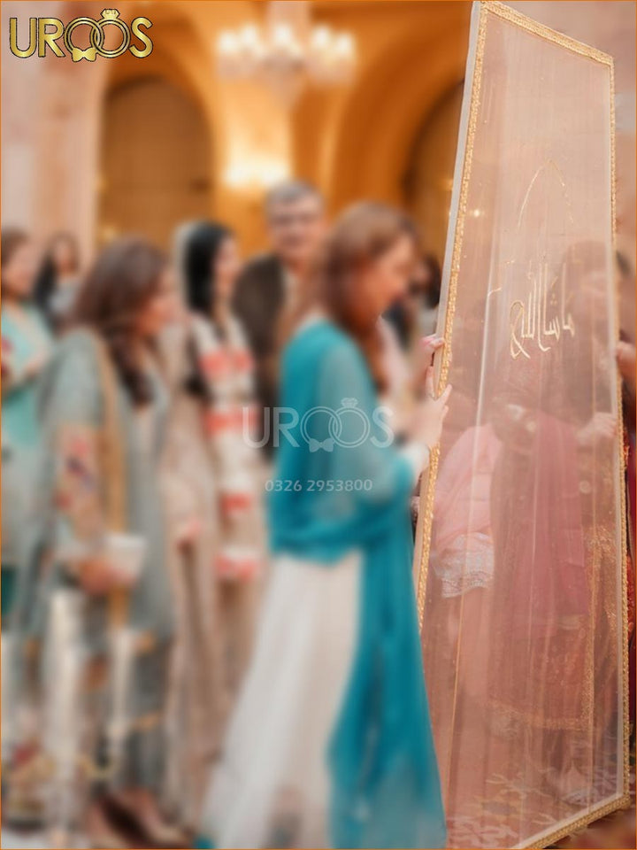 Celebrate your Nikah entrance with the radiant Lafz-e-Tahseen banner – a graceful piece adorned with the Arabic phrase "ما شاء الله", symbolizing divine praise and beauty. Designed to welcome the bride and groom into their sacred union, this elegant banner blends spiritual charm with aesthetic finesse.