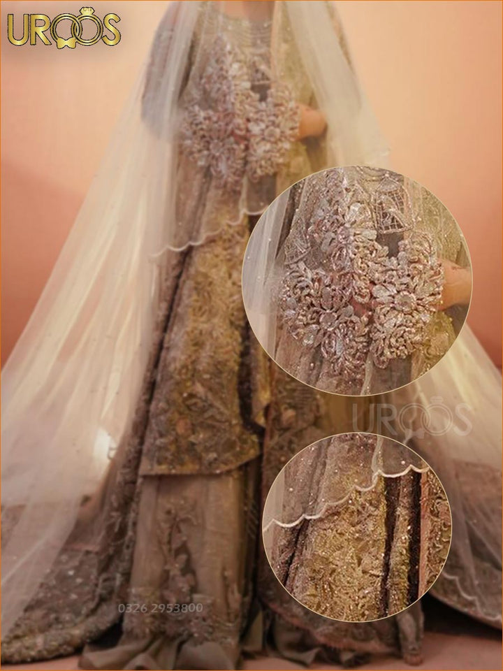 Standard – 4 Yards (Mehndi/Nikah Size), Basic – 3 Yards (Starting Size), Grand – 5 Yards (For Photoshoots), Custom Size |