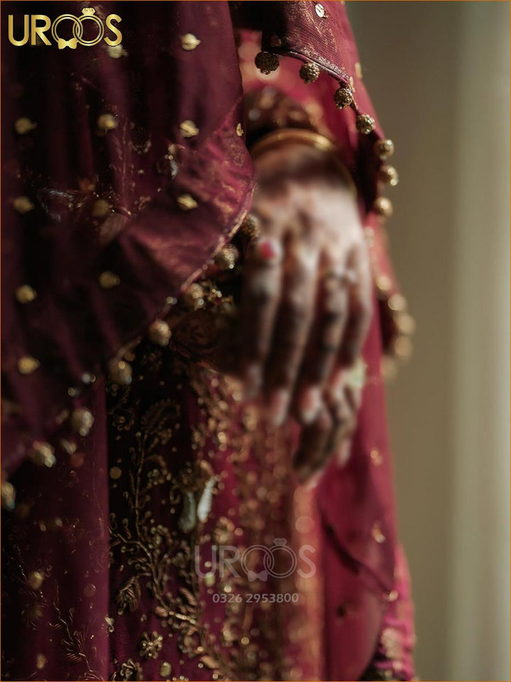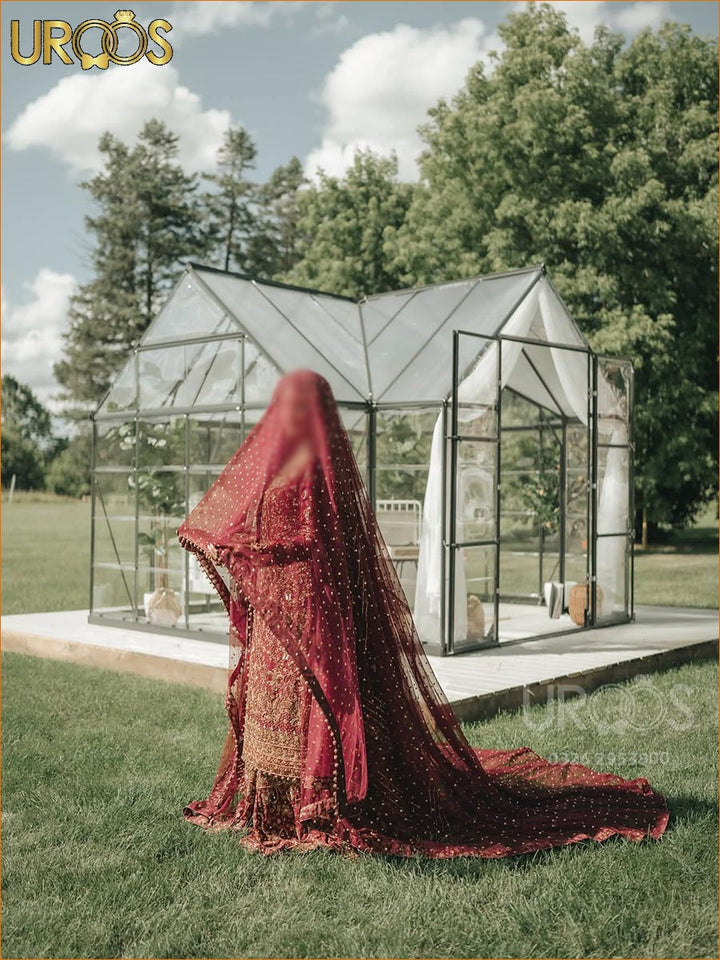 Designed for brides who wish to stand out with a bold yet graceful statement, Mehroon Aab reflects light beautifully, giving you that luminous glow in both daylight and candle-lit settings.