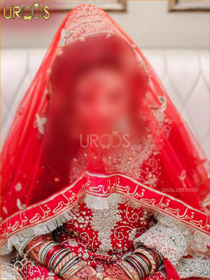 A timeless tribute to your sacred moment - this dupatta beautifully frames the words that begin your journey together: “Qubool Hai” Designed for elegance, emotion, and everlasting memories.