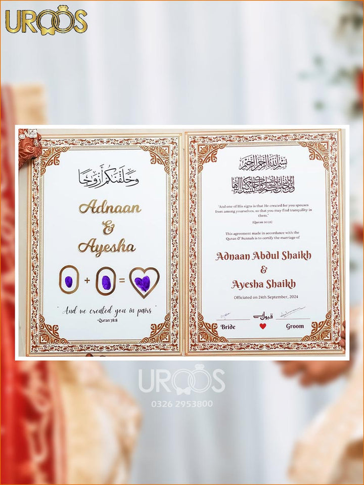 - Includes high-quality internal Cards for Nikah Nama, vows, and personal dedication notes